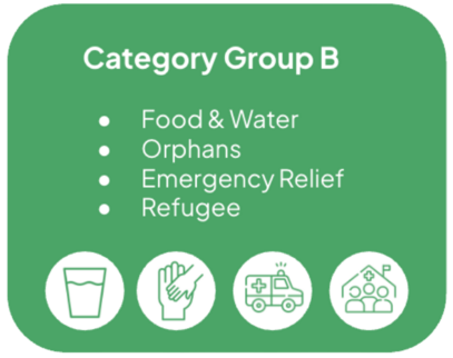 Campaigns in following categories: Emergency, Food & Water, Orphans, Refugees